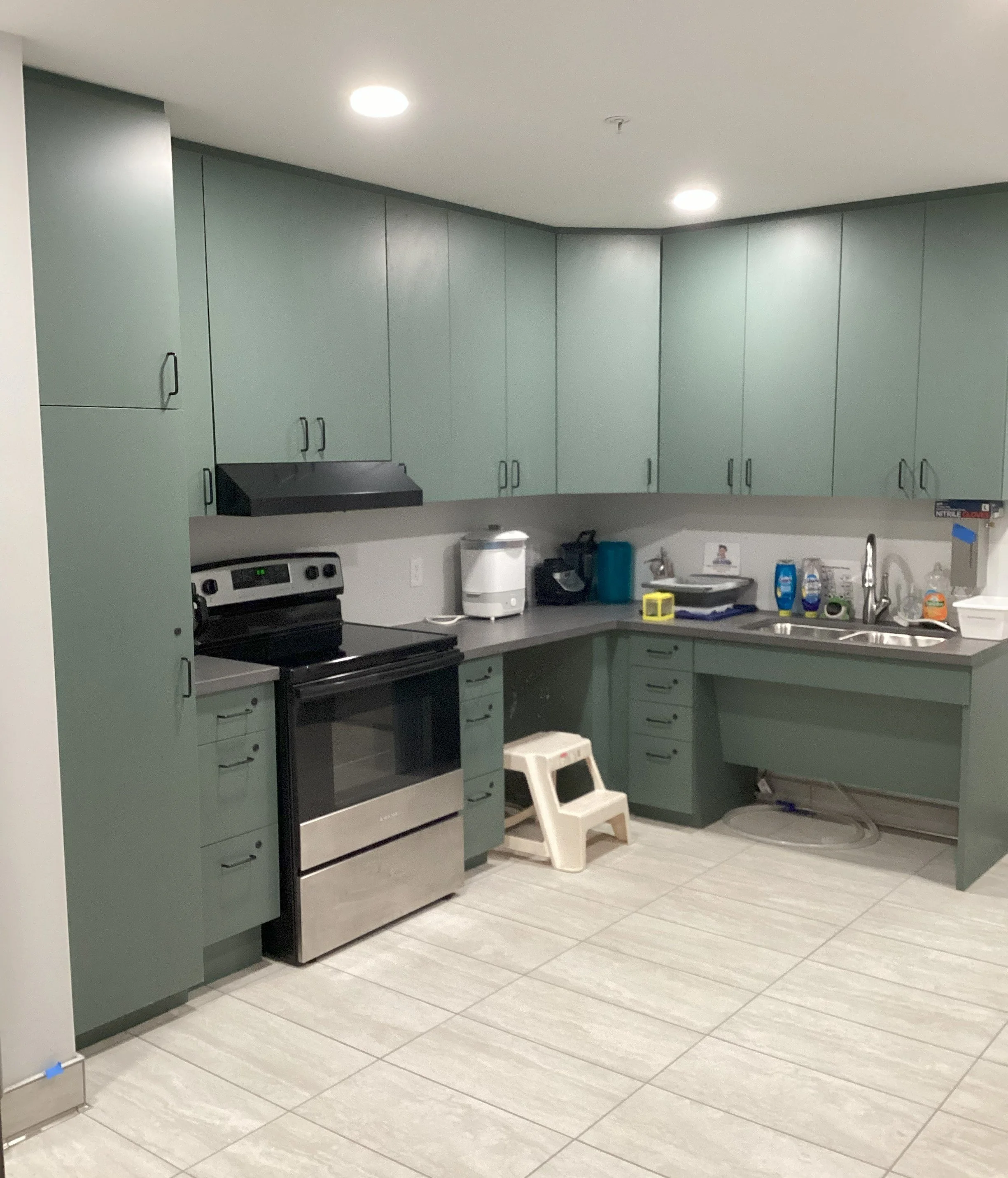 The second part of our construction should be completed by late February. This will finish up our renovations. With the second half comes a new family-friendly lobby featuring a parent room, two new consultation rooms, and a 2nd gym addition.